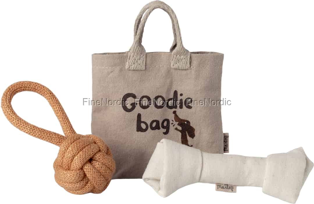 Now, your Maileg characters can experience the joy of looking after their very own pet. This adorable set brings that story to life with charming, perfectly scaled accessories. Imagine them packing the little 'Goodie bag' for a trip to the park, ready for a game of fetch with the golden rope toy. The soft, chewable bone is the perfect reward for a well-behaved pup, sparking sweet moments of care and friendship. It’s these tiny details that transform playtime into a world of heartfelt stories.
