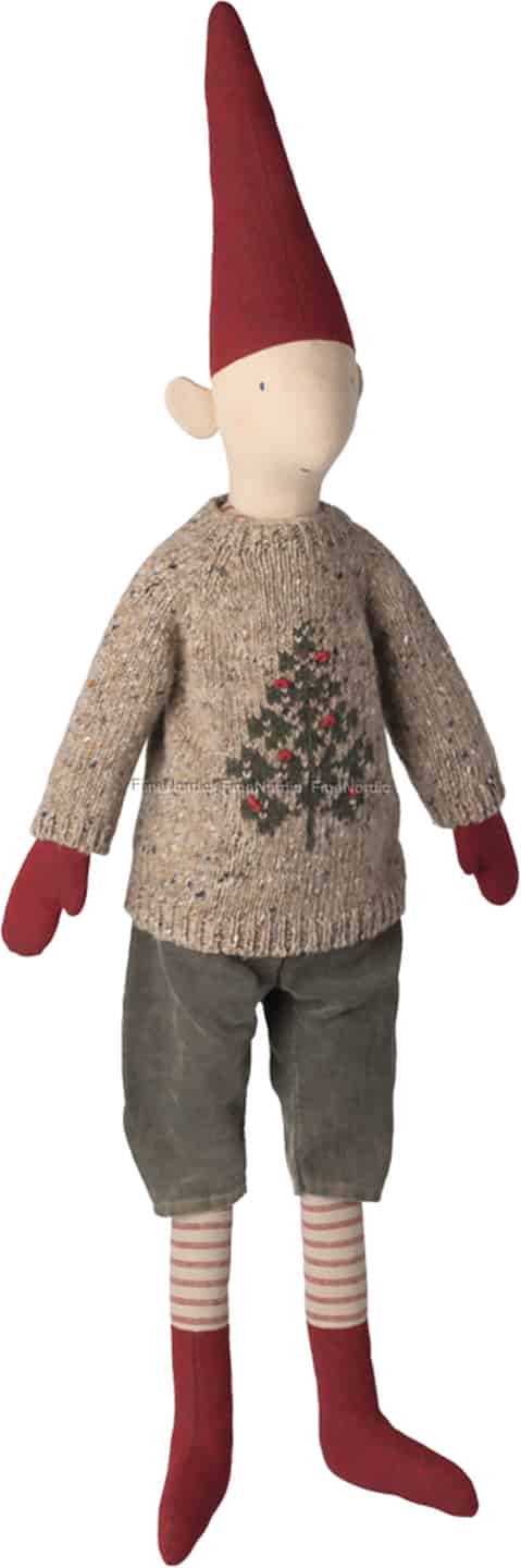 Invite a touch of timeless Nordic folklore into your home this Christmas. With his kind expression and cosy knitted sweater, this grand Maileg pixy is ready to watch over the festive preparations, bringing a quiet, gentle charm to your seasonal traditions.