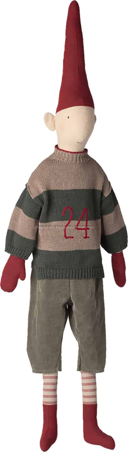 Imagine the quiet magic of Christmas Eve, with a gentle guardian watching over your home. This charming Maileg Pixy, with his kind expression and cosy sweater, brings the heartwarming spirit of a traditional Scandinavian Christmas right to your family.