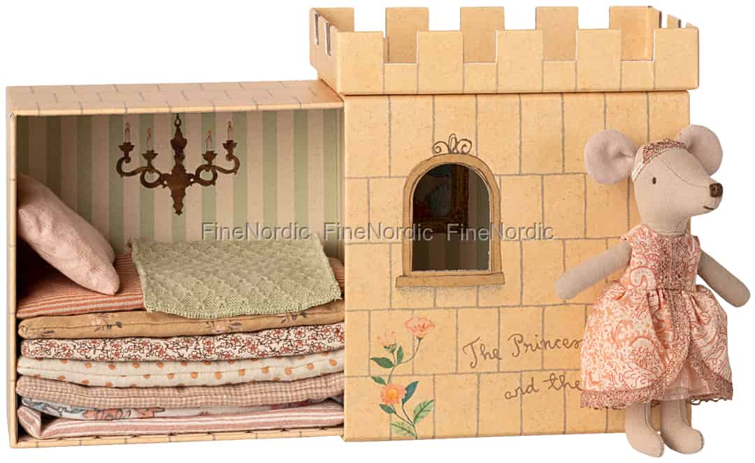 Can you feel a tiny pea hidden beneath a tall stack of soft mattresses? With this enchanting playset from Maileg, the classic fairy tale comes to life, ready for your little one to help a sweet princess mouse find her cosy place to rest.