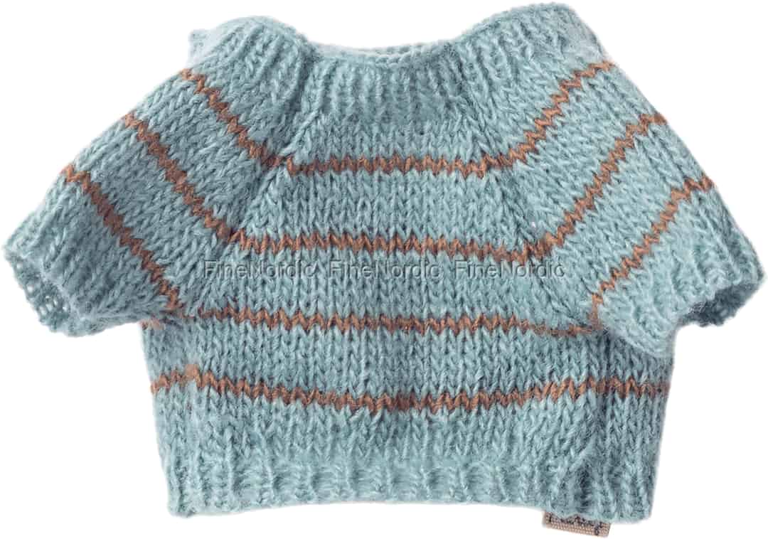 Every cherished friend deserves a wardrobe filled with love and care. This exquisite little sweater from Maileg is more than just an accessory; it's an invitation to a world of quiet, gentle play. Imagine your child carefully dressing their puppy for a day of make-believe, the soft, chunky knit a comforting texture in their hands. The serene, dusty blue and earthy brown stripes evoke memories of crisp autumn walks and cosy afternoons spent indoors, creating a beautiful backdrop for new stories.