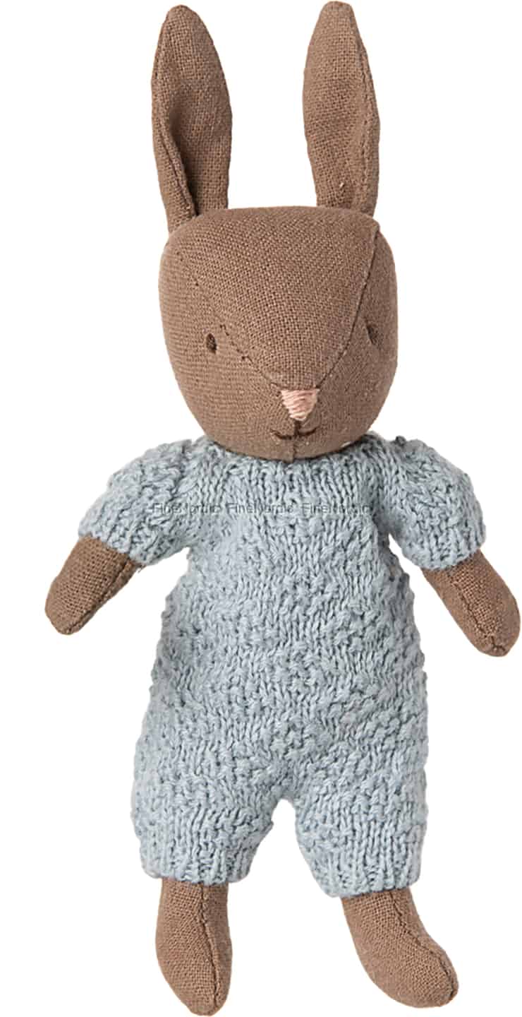 Open the door to a world of wonder with this sweet micro rabbit from Maileg. Dressed in a cosy, hand-knitted blue suit, this little friend is perfectly sized for small hands and grand stories, ready to become a cherished companion.