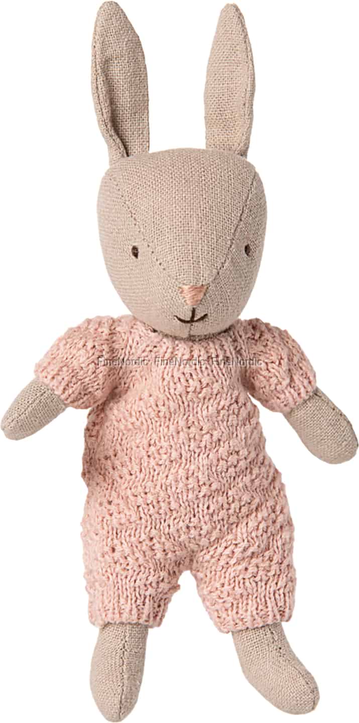 Maileg Rabbit Micro - Sand - Rose Knitted Suit - with Magnetic Hands