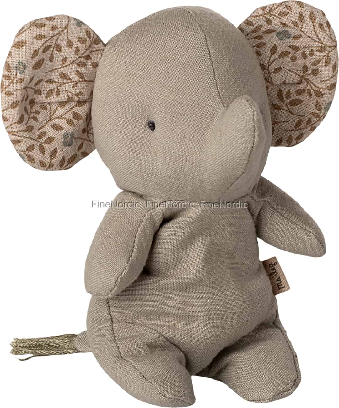 Welcome a new friend into your home with this darling miniature elephant from Maileg's Safari Friends collection. His gentle spirit is captured in his kind, embroidered eyes and soft, iron-grey linen-feel body. He is a quiet companion, designed not just for play, but to be a cherished keepsake for years to come. His large ears, lined with a beautiful botanical print, seem to listen intently to every whispered secret and bedtime story.