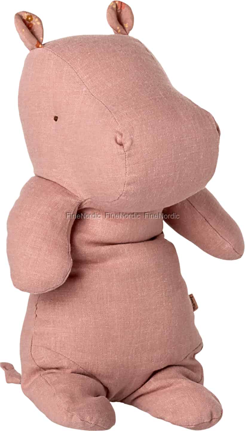 From the imaginative world of Maileg comes a new friend to cherish. The Safari Hippo is a gentle soul, with a soft, dusty rose body made from a lovely tactile textile that invites endless hugs. Its sweet, simple expression is brought to life with careful embroidery, while a peek inside its ears reveals a charming floral print, a secret detail that whispers of long afternoons spent in a sun-dappled meadow. This isn't just a toy; it's a companion for storytelling and a keeper of secrets.