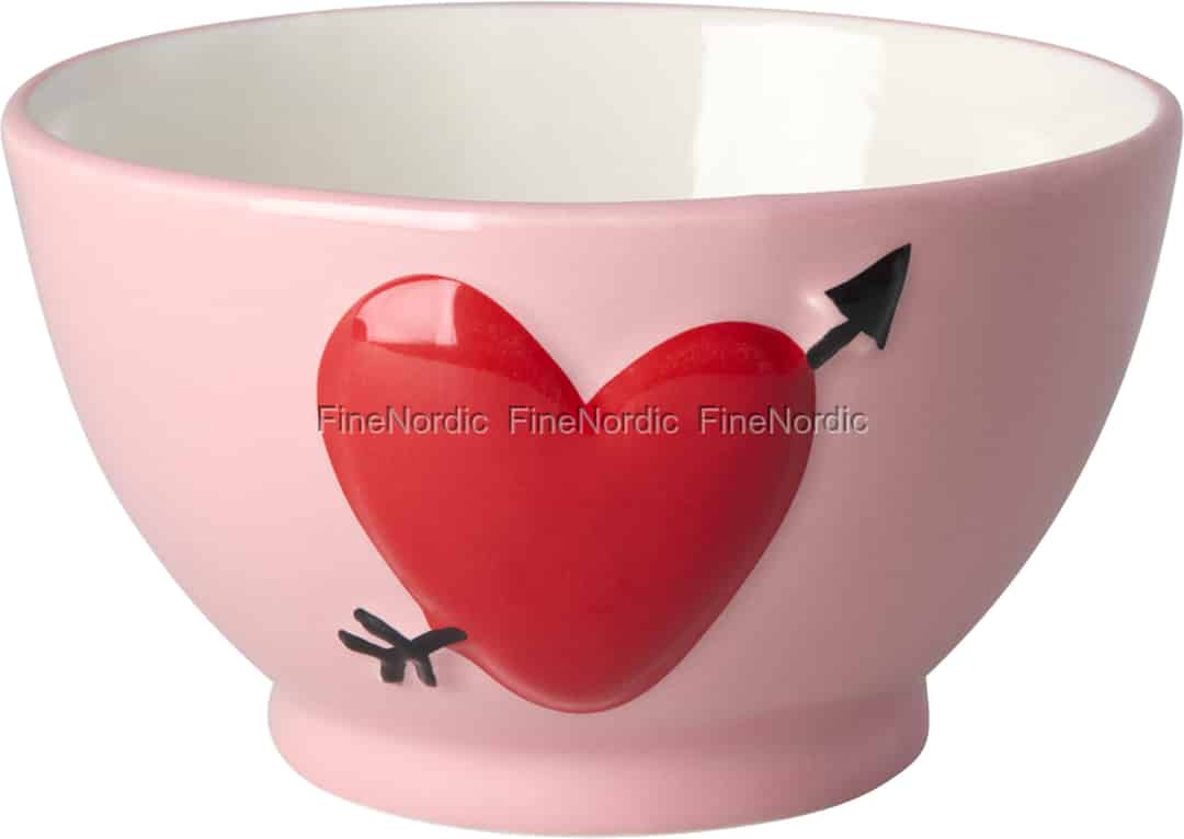 Infuse your daily rituals with the signature colour and charm of Rice. This beautiful ceramic bowl is more than just a piece of tableware; it's an expression of joy designed to make everyday moments feel a little more special. The smooth, soft pink exterior provides the perfect canvas for the bold, glossy red heart that stands out in delightful relief. Pierced by a classic cupid's arrow, this playful design detail adds a touch of whimsical romance to your breakfast nook or dinner table, inviting you to enjoy every bite.