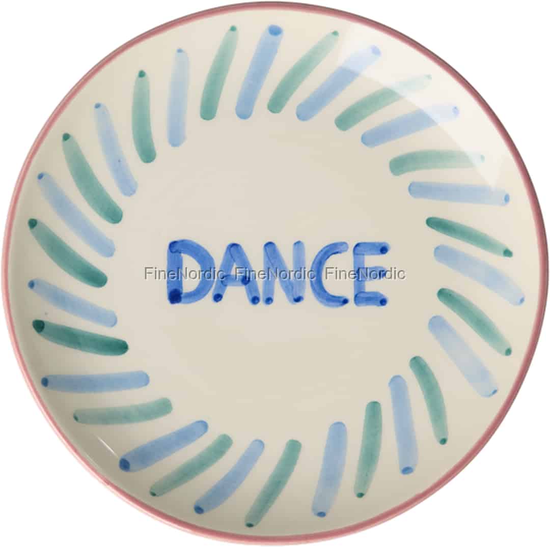More than just a piece of tableware, this ceramic plate is a little burst of joy for your home. The moment you see it, the bold, hand-painted 'DANCE' lettering, framed by a playful circle of cool blue and sea-green strokes, encourages a lighter heart. The delicate pink rim adds a final touch of warmth to the creamy ceramic, creating a piece that feels both personal and full of life. It’s a celebration of imperfection, where every brushstroke tells a story of its creation.