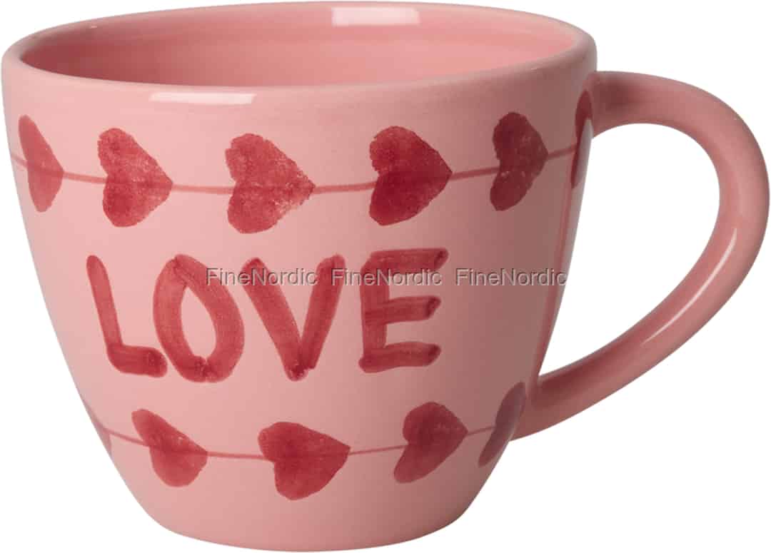 Imagine starting your day with a warm cup that feels like a hug. This beautiful jumbo cup from Rice, with its rosy pink glaze and sweet, hand-painted 'LOVE' message, is designed to bring a little joy to your daily rituals.