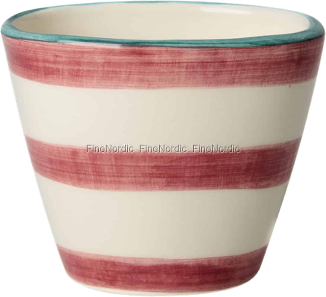 Rice Ceramic Oval Espresso Cup - Handpainted Pink Horizontal Stripes