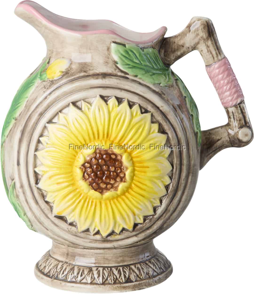 Celebrate the simple, radiant joy of a sunflower in full bloom. This wonderfully characterful vase from Rice is a tribute to sunny days and cottage gardens, crafted from ceramic with a rustic, wood-like texture that feels lovely to the touch. The large, embossed sunflower is the heart of the piece, its vibrant yellow petals bringing instant cheer to any space. Charming details, like the handle shaped like a twig and the unexpected touch of pink, give it a unique personality that is quintessentially Rice. It’s a piece that tells a story of warmth and happiness.