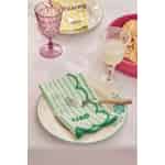 Imagine a table set for a sunlit lunch, filled with laughter and conversation. This is the scene that Rice's charming napkin was made for. The soft cotton is patterned with refreshing mint stripes, reminiscent of coastal holidays and fresh gelato. At its heart is a playful, tufted 'ciao' – a friendly greeting that instantly sets a relaxed and joyful tone. Every detail is crafted to bring a little extra happiness to your home and make your guests feel truly welcome.