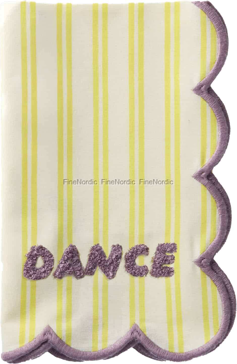 Let your table setting sing a song of pure happiness with this enchanting napkin from Rice. Known for their vibrant designs, Rice brings us a piece that perfectly captures the spirit of a sun-drenched brunch or a cheerful family dinner. The soft cream cotton, patterned with cheerful yellow stripes, provides a lovely canvas for the star of the show: the joyful invitation to "DANCE" in plush purple embroidery. It’s a small detail that makes a world of difference, turning any meal into a small celebration.
