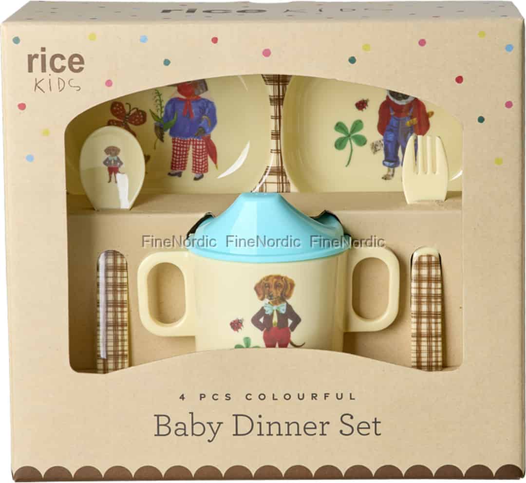 Rice Melamine Baby Dinner Set in Giftbox "Nathalie Lété" Brown - Set of 4