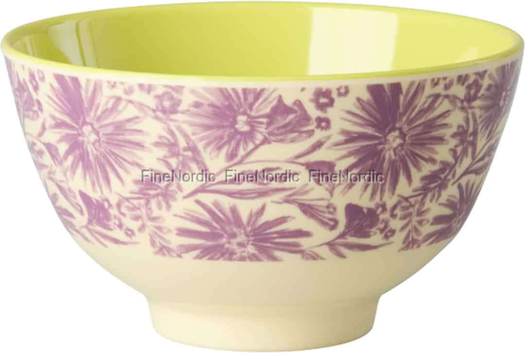 Inspired by the simple beauty of pressed flowers, this lovely bowl from Rice brings a touch of Scandinavian charm to your home. The delicate purple blossoms drift across the cream-coloured surface, creating a pattern that feels both nostalgic and refreshingly modern. Inside, a surprise burst of zesty lime green adds a signature touch of Rice playfulness. This isn't just a bowl; it's a small vessel of joy, designed to make your daily routines feel a little more special.