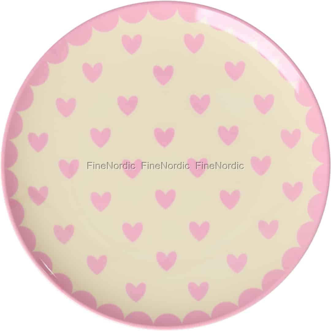 Rediscover the simple pleasure of a beautifully set table with the 'Favorite Hearts' melamine plate by Rice. This isn't just a plate; it's a small vessel of happiness, designed to brighten up your daily rituals. Imagine serving your child their favourite snack on it, its glossy surface and sweet pink hearts bringing an instant smile. The durable melamine construction means it’s ready for any occasion, from a spontaneous picnic on a sunny afternoon to a bustling family breakfast, adding a pop of signature Danish colour and charm wherever it goes.