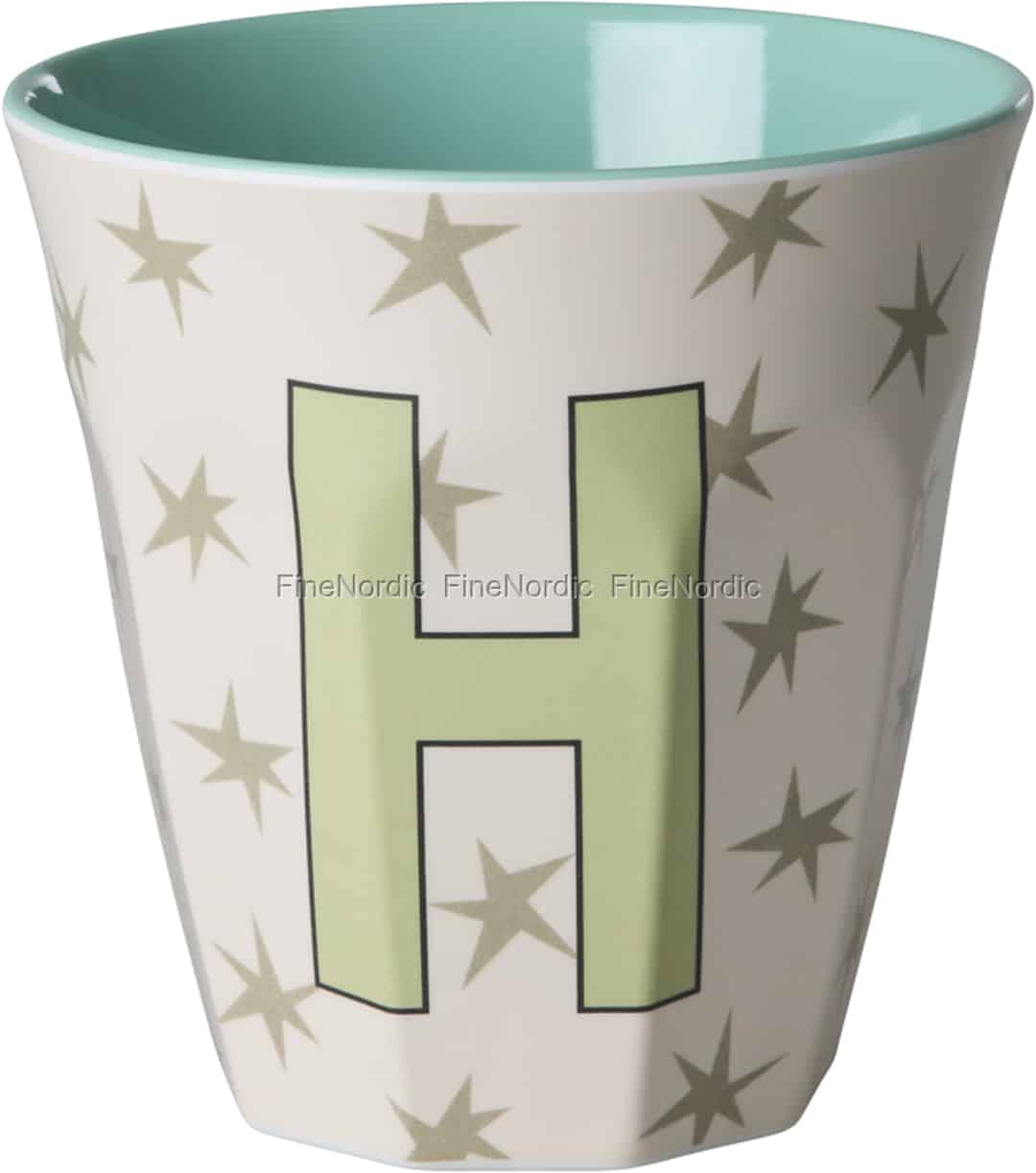 Imagine the smile on their face when they reach for a cup that is unmistakably theirs. This delightful melamine cup by Rice transforms the simple act of having a drink into a moment of personal joy. The soft green initial stands out beautifully against a creamy, star-dusted background, while the contrasting turquoise interior adds a hidden splash of colour that's revealed with every tilt. It’s a design that feels both playful and thoughtfully composed, capturing the signature charm that Rice is celebrated for. The sturdy, practical shape is perfect for small hands to hold securely.