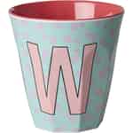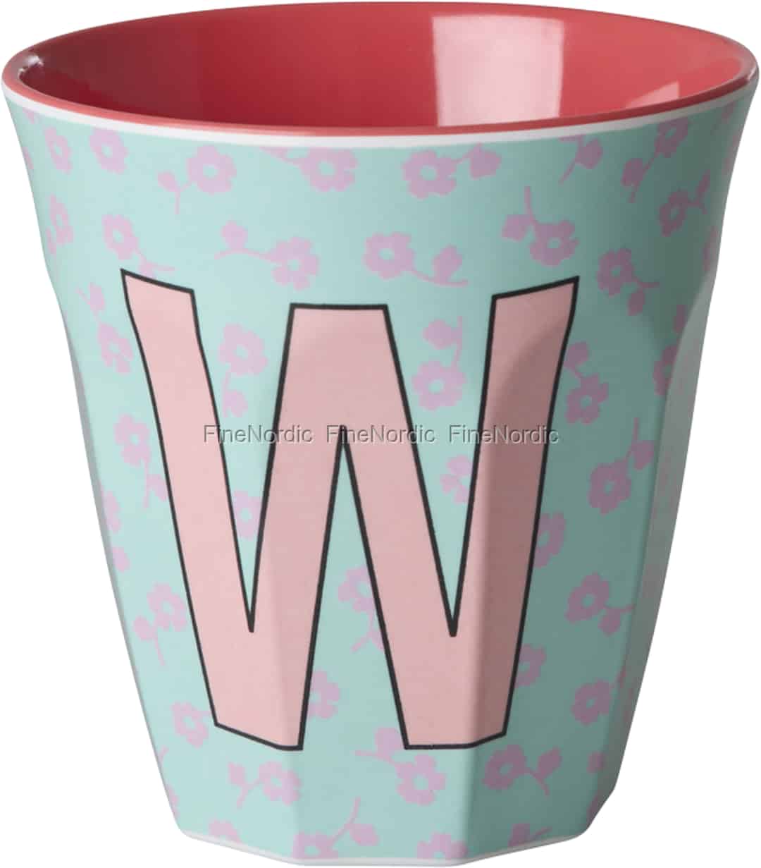 Add a touch of personal charm to your day with this delightful melamine cup from Rice. Featuring the letter 'W' amidst a field of sweet pink flowers, its vibrant design is sure to bring a smile with every sip or glance.