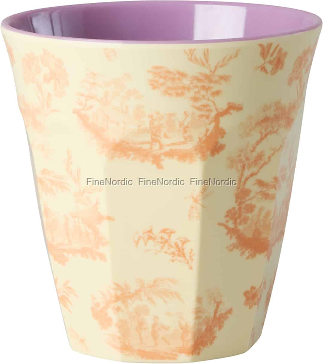 Imagine a quiet morning, with sunlight streaming in. This charming melamine cup from Rice brings a touch of pastoral romance to your table, its intricate toile pattern telling a story with every sip you take.