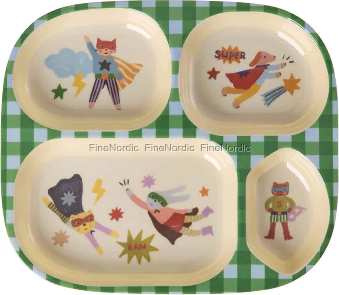 Bring a dash of superhero fun to breakfast, lunch, and dinner with this wonderfully imaginative plate from Rice. Each compartment features a different heroic animal, ready to fly into action and cheer on your little one. The cheerful green gingham border frames the scene, creating a playful backdrop for every meal. It’s more than just a plate; it’s an invitation for your child to join a super squad, turning the simple act of eating into a delightful story they can be part of every day.