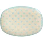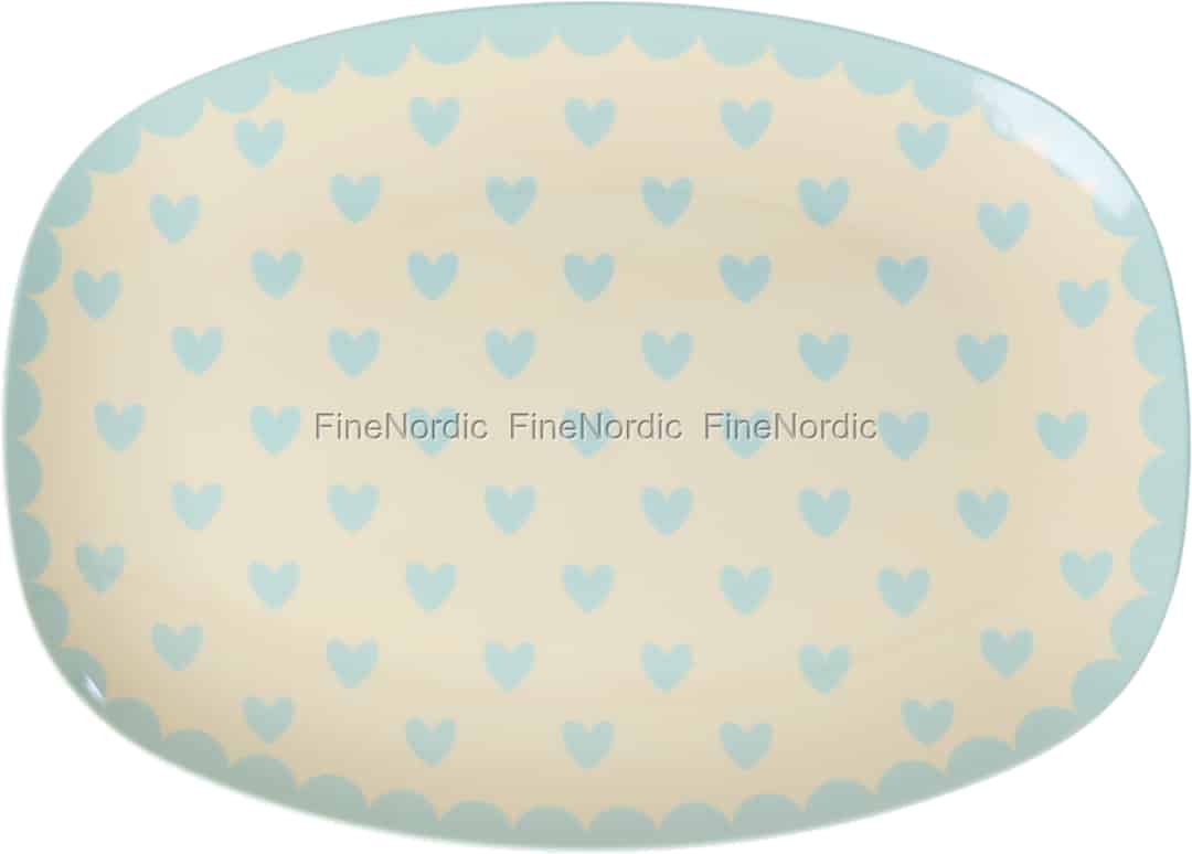 Imagine adding a delightful splash of colour and affection to your daily routine. This lovely rectangular plate from Rice, with its sweet mint hearts and scalloped edge, is designed to bring a smile to every meal.