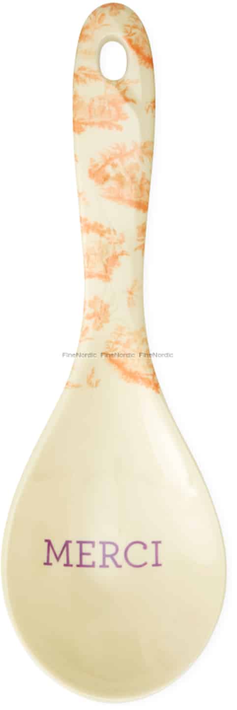 In the bowl of the spoon, a simple, heartfelt 'MERCI' is printed in a lovely contrasting purple. It’s a little reminder to find gratitude in everyday moments, like sharing a meal with loved ones. Practical enough for the dishwasher and beautiful enough for your most cherished get-togethers, this spoon doesn't just serve food—it serves a story of warmth, charm, and effortless hospitality.
