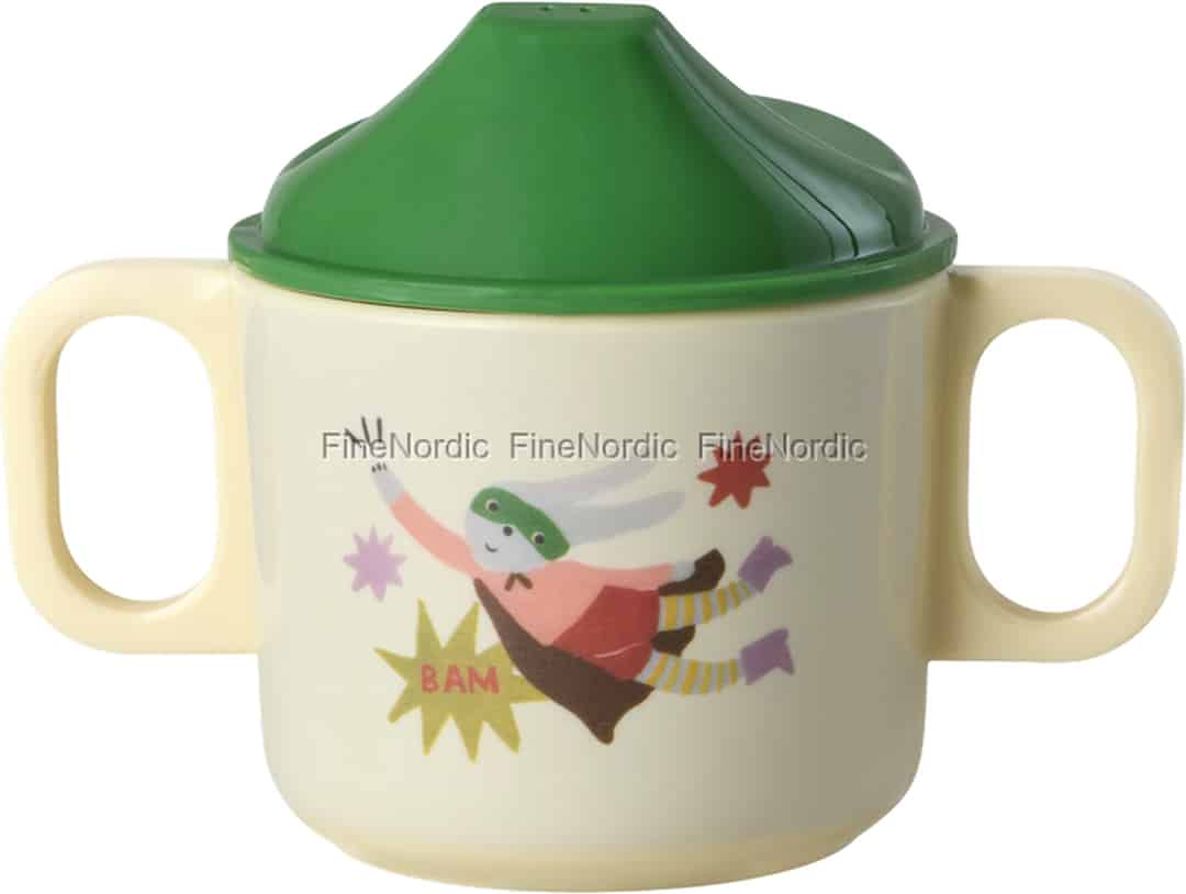 Watch your little one's eyes light up with this delightful 'Hero' sippy cup from Rice. Designed to make learning to drink independently a joyful adventure, its charming superhero rabbit is ready to swoop in and save the day, one sip at a time.
