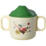 From the first morning juice to a soothing drink of water at lunchtime, the 'Hero' sippy cup is a trusty companion for your child's daily routine. The cheerful green lid fits snugly onto the cream-coloured melamine base, designed to make those inevitable little tumbles less messy. Its thoughtful two-handled shape is perfectly proportioned for small hands to grasp, encouraging them on their journey towards independent drinking.