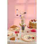 Let your dining experience be a celebration of art and joy with this stunning vintage-style plate from Rice. A special creation in collaboration with the celebrated French artist Nathalie Lété, its design is a heartfelt ode to nature's simple beauty. The creamy surface is a perfect backdrop for the intricate bouquet, where colourful birds perch amongst delicate blooms, and butterflies flutter along the scalloped coral rim. It’s a piece that tells a story, inviting conversation and smiles.
