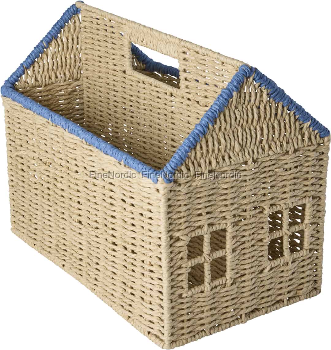 Rice Paper Rope Magazine Holder - House Shape - Blue Details