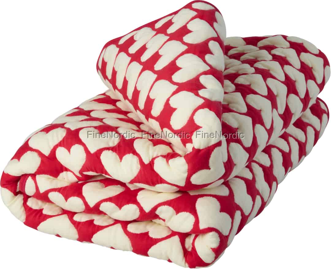 Introduce a touch of playful warmth to your home with this delightful quilted blanket from Rice. Its vibrant red and soft cream heart pattern is a cheerful invitation to slow down, snuggle up, and enjoy a moment of pure comfort.