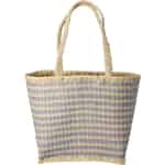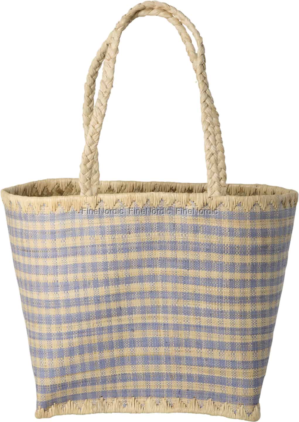 From the colourful world of Rice comes a bag that captures the pure joy of a perfect summer's day. Handcrafted from natural raffia, its soft blue and beige checkered pattern is reminiscent of seaside picnics and leisurely strolls through a weekend market. The sturdy, braided handles feel comfortable in your hand or over your shoulder, while the playful fringed trim adds a final touch of artisanal character. It’s a piece that tells a story of care, craftsmanship, and a love for life's simple pleasures.