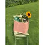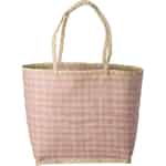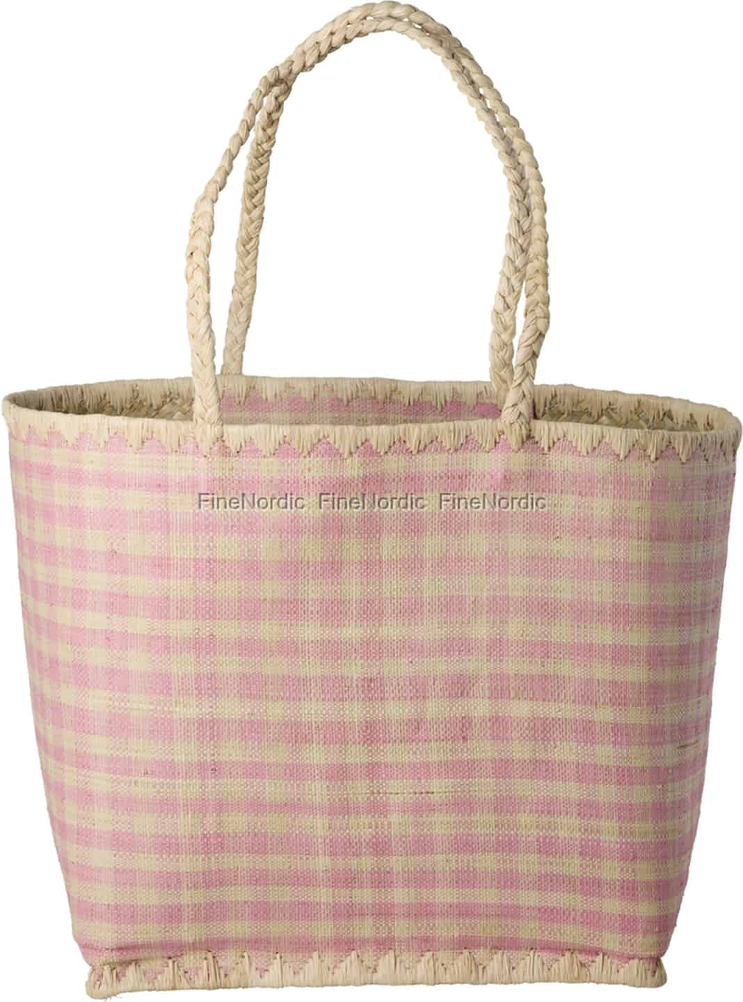 Rice Raffia Bag - Pink Checkers - Raffia Handles - Large