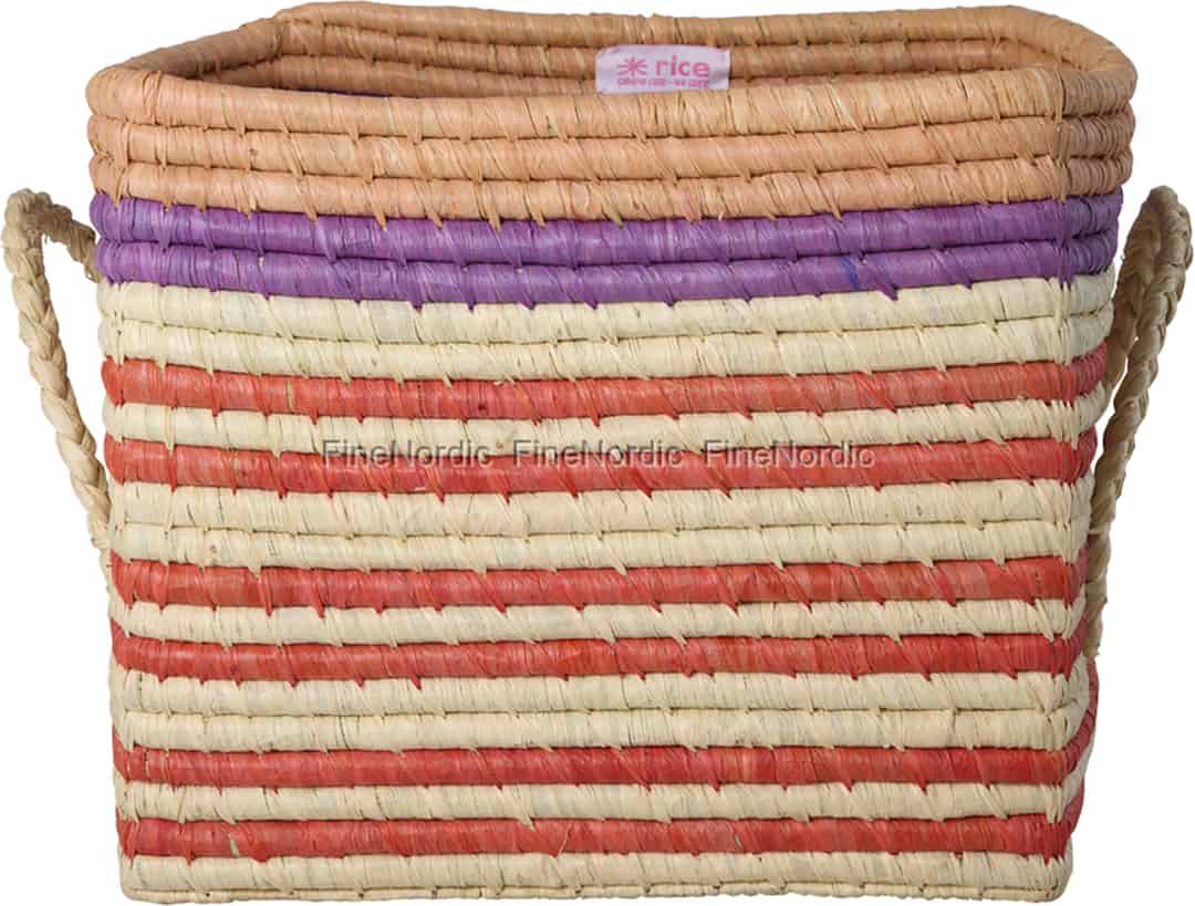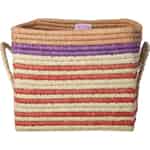 Discover the delightful world of Rice, where everyday items are infused with colour and happiness. This beautiful square basket is a perfect example, handcrafted with care from natural raffia fibres. The texture of the weave is wonderfully tactile, while the bold stripes of red and purple against the natural base create a cheerful rhythm that instantly brightens your decor. It’s a piece that tells a story of traditional craftsmanship, designed to bring a smile to your face each time you see it.