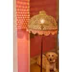 Rice Raffia Lamp Shade - Dome Shape - Embroidered Scallop Edge - Soft Pink