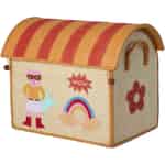 Every adventure needs a base, and every hero needs a home. This wonderful storage house from Rice is so much more than a simple basket; it's the start of a new story in your child's room. Lovingly handmade from natural raffia, its textured walls and cheerful striped roof create a magical haven. The delightful, hand-embroidered appliqués—from the brave little hero to the bright rainbow and empowering 'wow'—are an invitation to a world of make-believe.