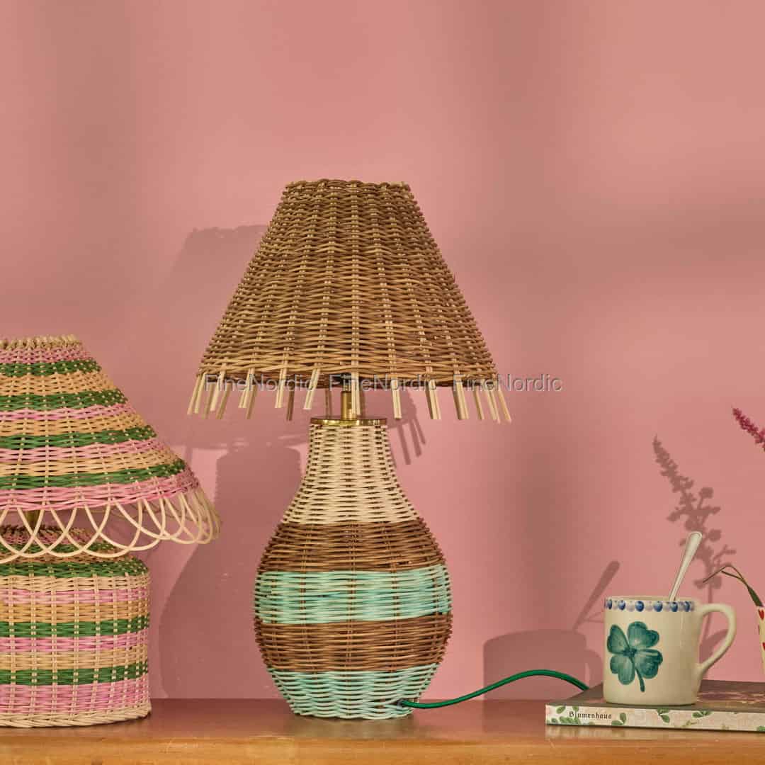 Invite a touch of playful charm into your home with this beautiful table lamp from Rice. Its hand-woven raffia base features delightful stripes of colour, creating a piece that’s as much a work of art as it is a source of warm, inviting light.