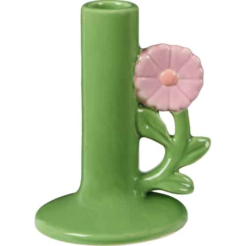 Ib Laursen Candle Holder - for 2.2 cm Candle - Green with Light Pink Flower