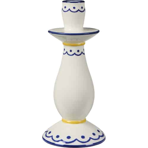Ib Laursen Candle Holder - for 2.2 cm Candle - White - Blue and Yellow Pattern